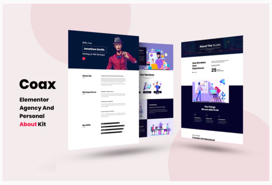 If you are freelancer, agency, creative studio, personal website then Coax about us template help you to make you’re about us pages. We used the Elementor Free Plugin which is not required to pay any extra amount of money.