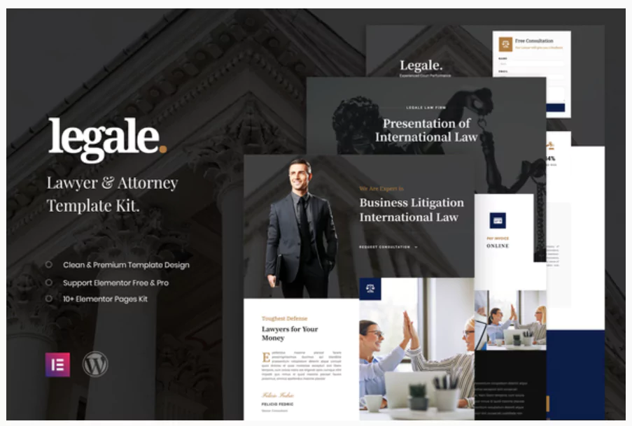 Legale is a pixel-perfect Elementor Template Kit with terrific attention to details, flexibility and performance. Start with any of these layouts or create visually with the highly customizable with Elementor . This template contain 10+ pages layout with more 30 section block. You can ready to use for Lawyer, Law and Attorneys purposes.